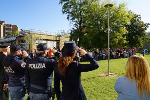 Alla cerimonia simbolica, organizzata dal”IC di Pianoro con il Consiglio d’Istituto, hanno presenziato la Dirigente Liana Baldaccini, la vice Sindaca assessora all’Istruzione Flavia Calzà e l’assessore all’Ambiente Stefano Buganè del Comune di Pianoro, il Commissario Capo della Polizia di Stato dottoressa Arianna Donati, il Luogotenente C.S. Luigi Migliore Comandante della stazione Carabinieri di Pianoro, l’Unità Cinofila della Polizia di Stato e il Reparto Prevenzione Crimine della Polizia di stato.