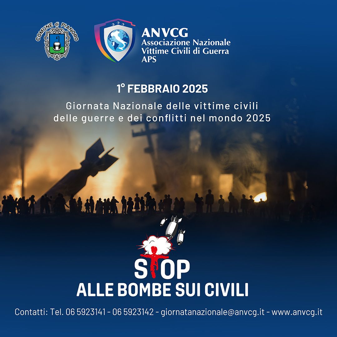 Il Comune di Pianoro aderisce alla Giornata Nazionale delle Vittime Civili delle Guerre e dei Conflitti nel Mondo, il 1° febbraio con Istituzioni e Comuni di tutta Italia per dire: “Stop alle bombe sui civili” e per mantenere viva la memoria dei conflitti del passato e richiamare l'attenzione sul dramma che vivono i civili coinvolti nei conflitti armati attuali.